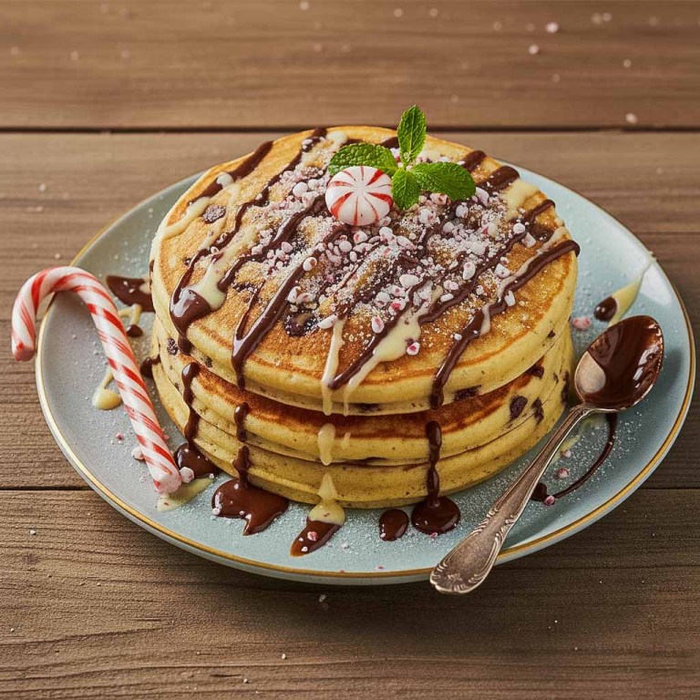 Fluffy peppermint pancakes with chocolate chips for season/festival specials.